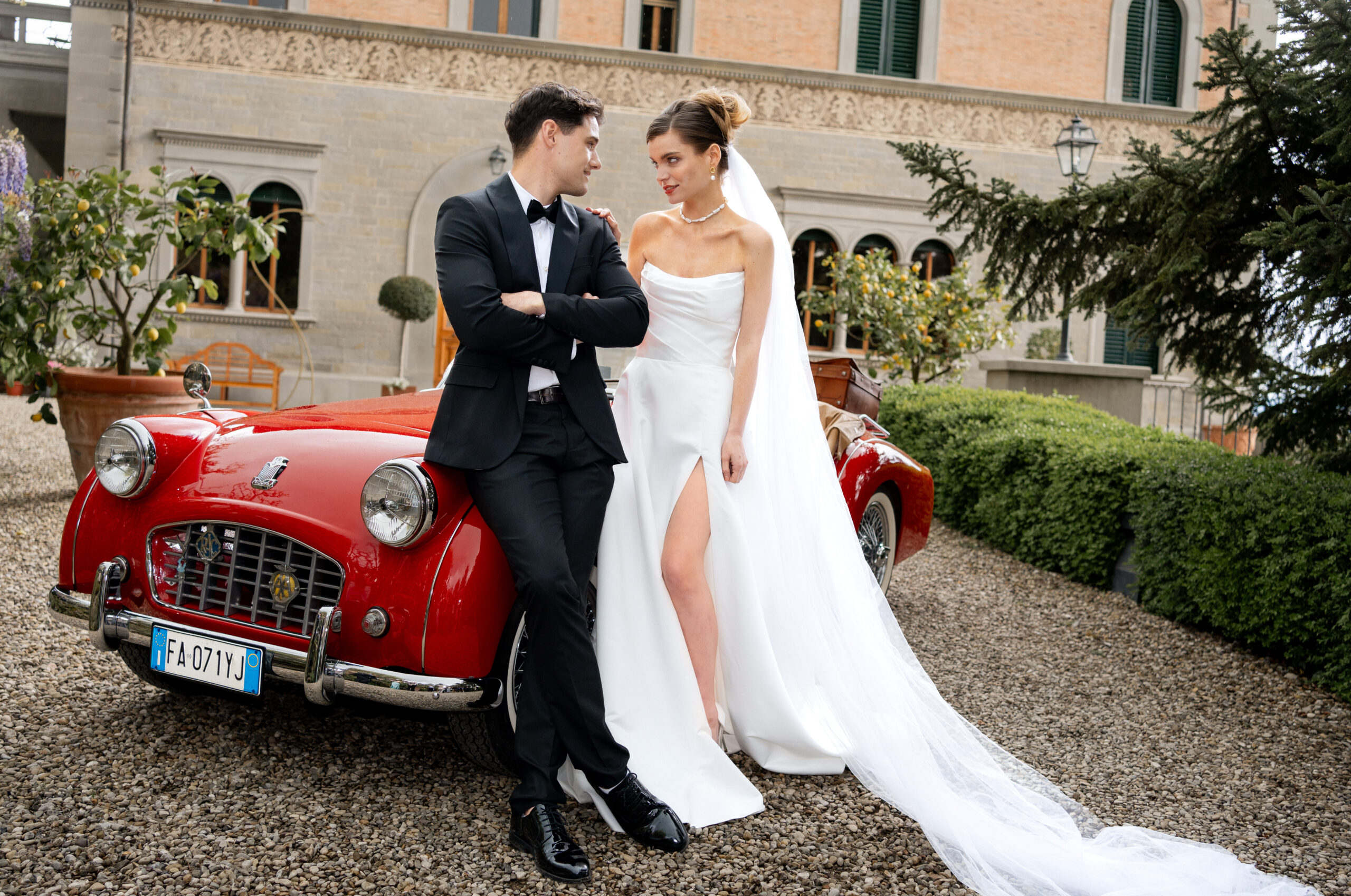 Day 2: A full wedding story at a beautiful estate — including bridal preparations, ceremony, couple portraits, retro car, decor, and cake cutting.